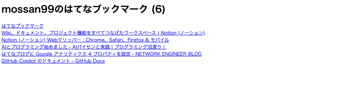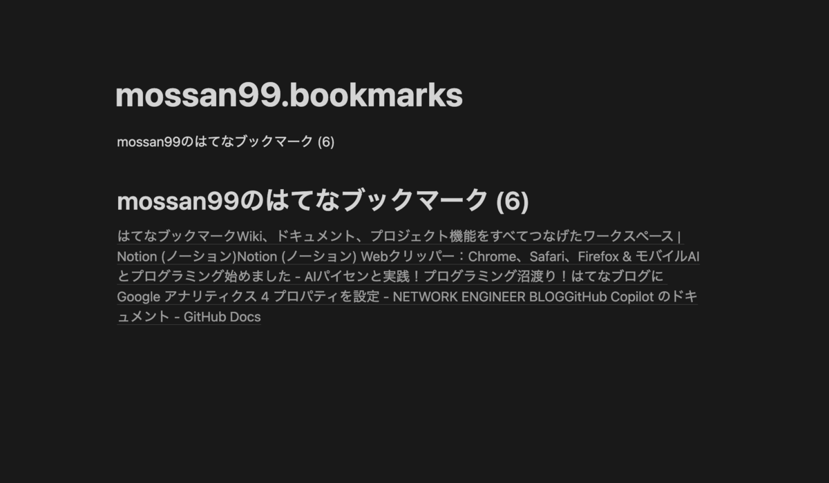最近は、「Notion Web Clipper」などで、Notionに直接ブックマークしてますが、過去に保存した、はてなブックマークもNotionに取り込んでみたいな、というのが今回のきかっけです。